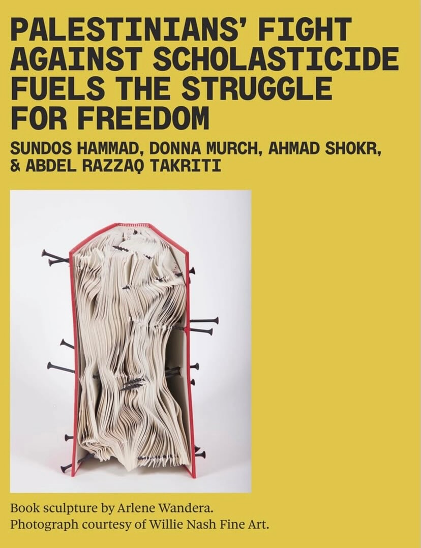 The article features contributions from Sundos Hammad, Coordinator of the Right to Education Campaign at Birzeit University, alongside Dr. Abdul Razzaq Takriti (Rice University), a leading Palestinian historian, Dr. Donna Murch (Rutgers University), an American scholar, and Dr. Ahmed Shokr (Swarthmore College), an Egyptian scholar.